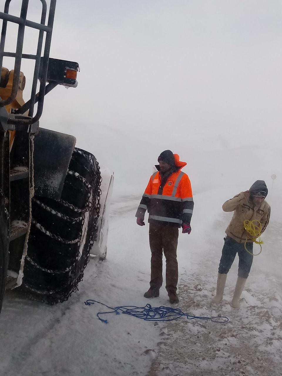 بارش شدید برف و کولاک در محورهای حوزه کالپوش با حضور راهداران میامی